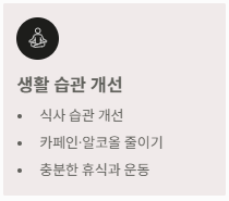 - 생활 습관 개선이 필요한 경우: 소화 불량이나 역류성 증상이 동반될 때 (식사 습관 개선, 카페인/알코올 줄이기), 스트레스가 심할 때 (충분한 휴식, 명상, 가벼운 운동).