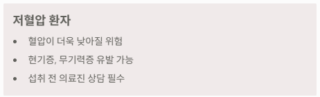 2. 저혈압 환자와 임산부는 전문가와 상의 필요