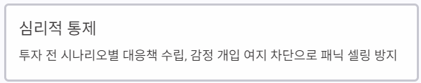 | Step 1 | 본인의 투자 성향과 감당 가능한 손실 범위 확정 |