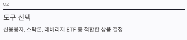 | Step 2 | 신용융자, 스탁론, 레버리지 ETF 등 적합한 도구 선택 |