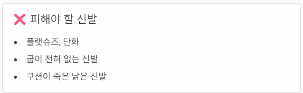 | Step 3 | 신발 환경 개선 | 뒤꿈치 충격 분산 및 보호 |