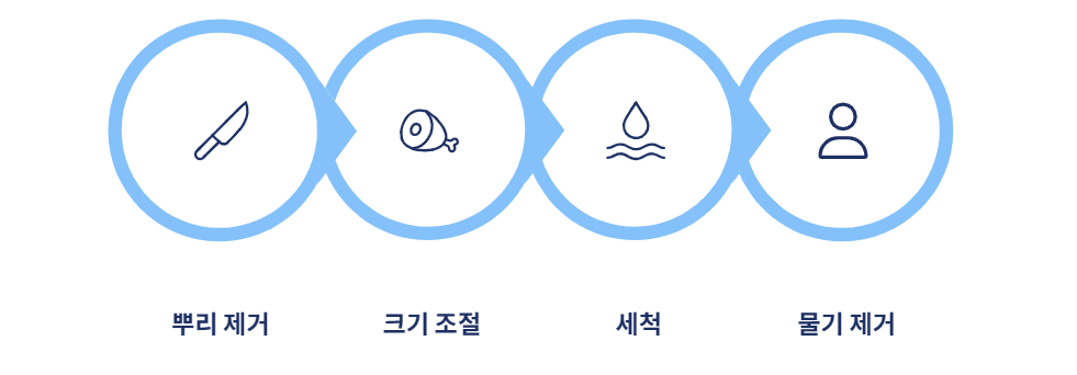 - 세척하기: 흙이 많이 묻어 있을 수 있으므로 찬물에 5~10분 정도 담가두었다가 흐르는 물에 3번 이상 깨끗이 헹궈냅니다.