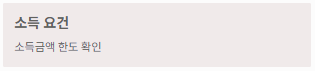 - 소득금액 합계액이 연 100만 원 이하여야 합니다. (근로소득만 있는 경우 총 급여 500만 원 이하)
