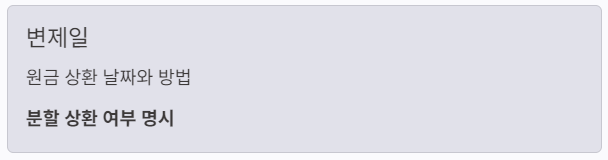| 변제일 | 원금을 돌려받을 날짜와 방법 | 분할 상환 여부 명시 |