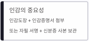 | 인적 사항 | 이름, 주민등록번호, 주소, 연락처 | 신분증 대조 필수 |