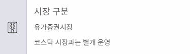 - 시장 구분: 유가증권시장 (코스닥 시장과는 별개로 운영)
