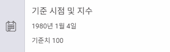 - 기준 시점 및 지수: 1980년 1월 4일 (기준치 100)