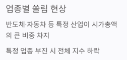 이 때문에 반도체 경기가 좋지 않으면 다른 기업들의 실적이 양호하더라도 코스피 지수 자체가 하락하는 현상이 발생합니다. 지수가 시장 전체를 대변하는 것처럼 보이지만 실제로는 특정 산업의 성과에 강하게 종속되어 있다는 점을 이해해야 합니다.