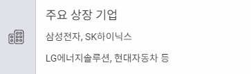 - 주요 상장 기업: 삼성전자, SK하이닉스, LG에너지솔루션, 현대자동차 등