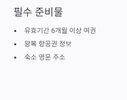 | 준비물 | 유효기간 6개월 이상 남은 여권, 왕복 항공권 정보, 숙소 주소 |