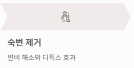 - 장의 연동 운동이 활발해지고, 숙변이 제거되어 변비를 해소하는 데 매우 효과적입니다.
