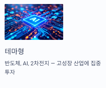 내가 투자하는 상품이 무엇을 따라가는지 알아야 합니다. 대표적으로 시장 전체를 따르는 지수형(S&P500, 나스닥100), 특정 산업에 집중하는 테마형(반도체, AI, 2차전지), 그리고 매달 현금을 받는 배당형이 있습니다.