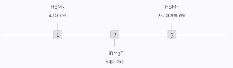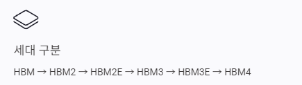 - 주요 세대 구분: HBM, HBM2, HBM2E, HBM3, HBM3E, HBM4