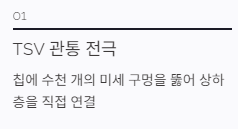 여기서 핵심 기술은 TSV라는 관통 전극 기술입니다. 칩에 미세한 구멍을 수천 개 뚫어 상하층을 직접 연결하는 방식인데, 이는 기존의 금선을 이용한 연결 방식보다 데이터 전송 속도를 획기적으로 높여줍니다.