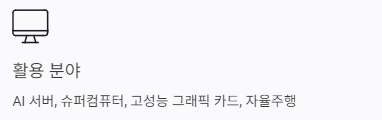 - 주요 활용 분야: AI 서버, 슈퍼컴퓨터, 고성능 그래픽 카드, 자율주행 시스템